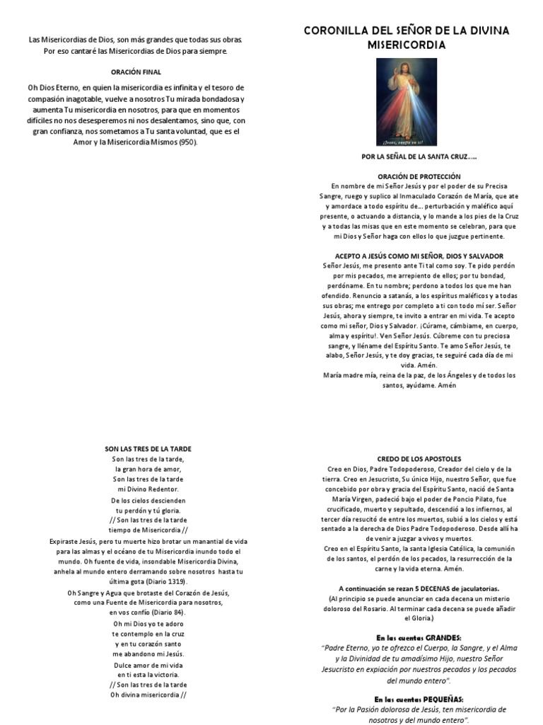 Misericordia Divina que de la nada nos llam a la existencia. Misericord ia Divina I todo entendimiento humano o an lico. Se pueden decir tambien las letanias de la virgen todas estas oraciones las pueden encontrar accediendo a nuestro canal.